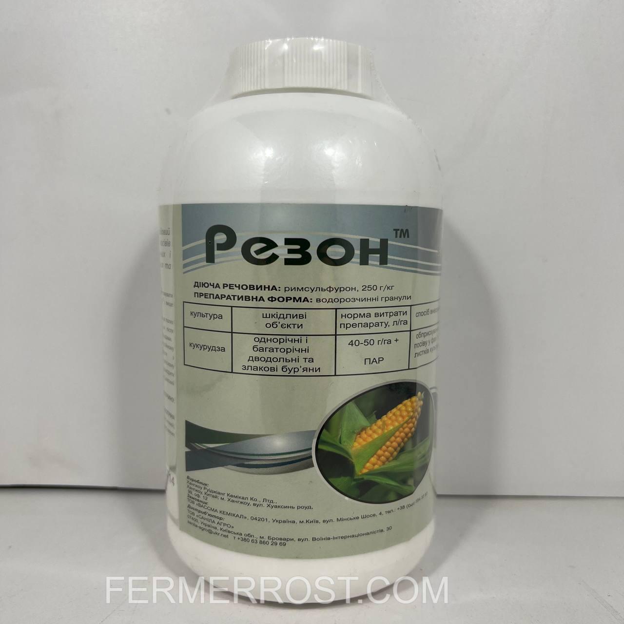 Резон – системний гербіцид для післясходового контролю однорічних та багаторічних злакових та широкого спектру дводольних бур’янів у посівах картоплі та томатів. Діюча речовина гербіциду поглинається переважно листками і переміщується до точок росту бур’янів. Гербіцид зупиняє поділ клітин в місцях росту пагонів і коріння, в результаті чого припиняється ріст піддатливих бур’янів через декілька годин після обробки. Однак, видимі симптоми з’являються лише через декілька днів, а загибель бур’янів наступає через 15-25 днів. Менш піддатливі бур’яни і рослини, що знаходяться на більш пізній стадії росту, можуть не загинути, але в цьому випадку їх ріст та конкурентноздатність з культурою в споживанні поживних речовин і води припиняється. Тепла, волога погода після обробки підвищує ефективність гербіциду, а прохолодна та суха – знижує.